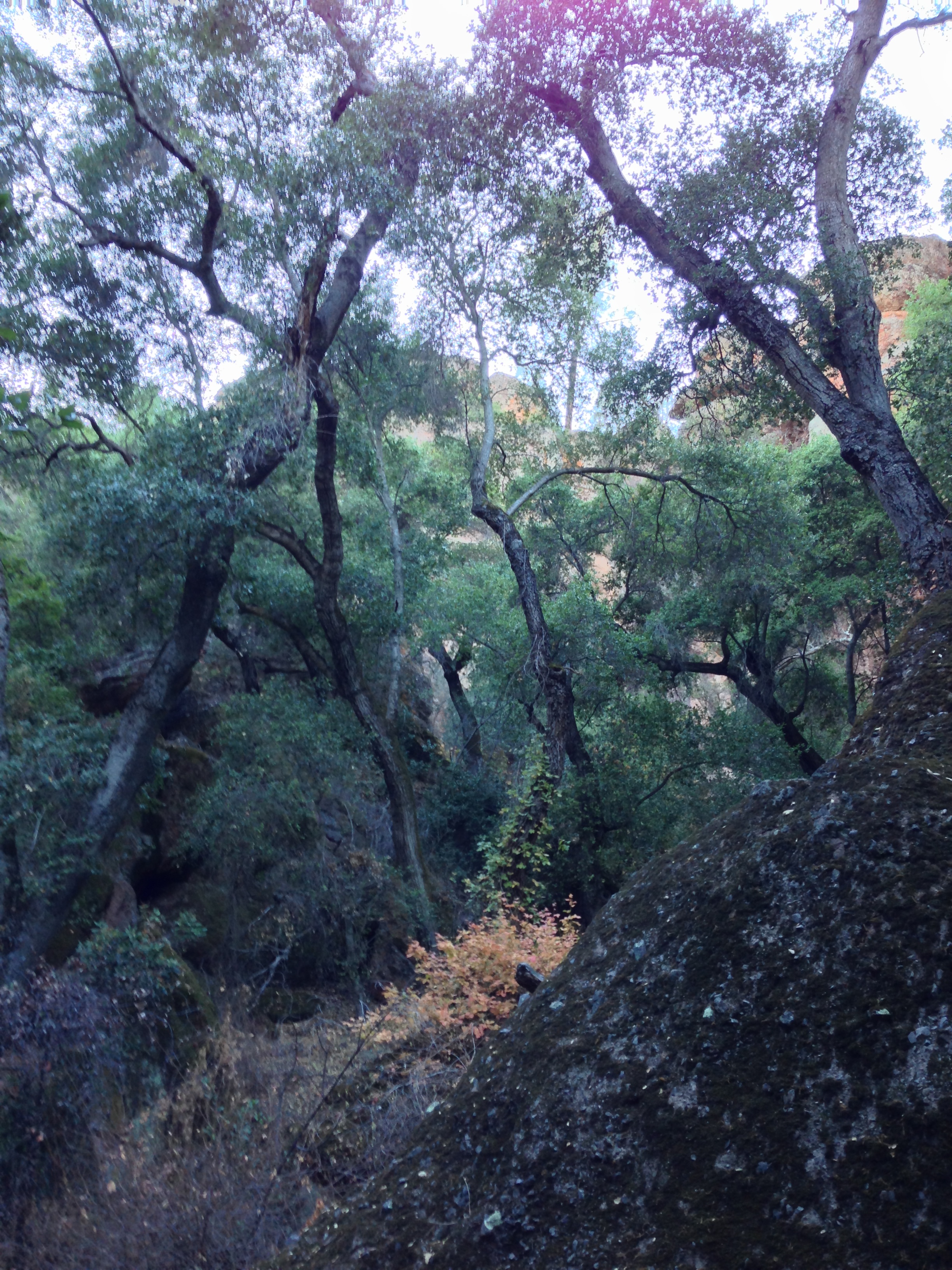After .2 miles, you will have passed by several climbing areas, and will have had several spectacular views of the surrounding terrain and medium walls of the park. Even if you don’t climb, this is a great opportunity to learn about the sport, and watch all levels of climbers in action. If you don’t like climbing, there’s plenty of interesting terrain to view, as Pinnacles is a geologically diverse area as the rocks and features are the remnants of an ancient volcano that eroded over the course of several million years. At the .2 mile mark, follow the sign on the left fork of the trail toward the Bear Gulch Caves/Reservoir. This network of trails is well marked and maintained by the National Park Service, so there is little danger of getting lost.